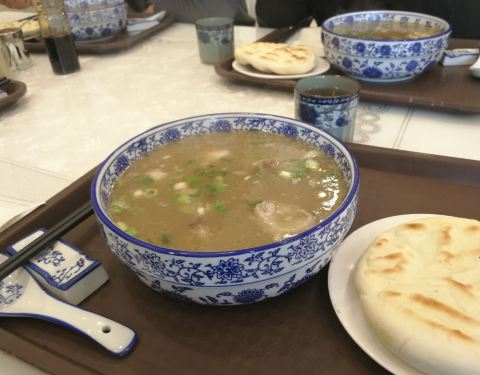 店面很好找,去的时间已经过了饭点所以人少,这个店每天下午2.30就不营业了,所以要早点去。羊杂汤味道不错,我都喝完才走。