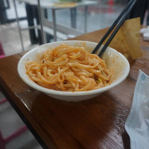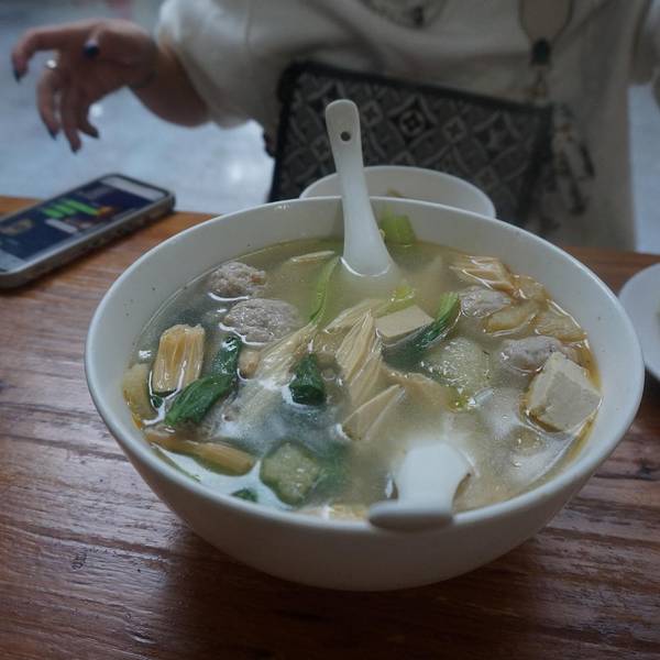 打卡基本各大网站均有推荐的子午路张记肉夹馍,算是9月18日我们吃的最爽的一顿了,进去的时候人山人海,我们被迫选择靠门外的桌子。人虽然多却没等多久。肉夹馍便上来了,迫不及待的咬了一口,发现和湖南的肉夹馍完全不一样,内软外脆,一口下去既有烤馍的香气也有腊牛肉的肉香,口味适中,不愧是网红肉夹馍。何乖乖原本对凉皮给予厚望,却大失所望,出入口便能立即感受到面皮并不筋道,不像是今天现做的凉皮,看上去非常好吃的油泼辣子没能拯救这碗凉皮,我们两各自吃了一口就没动了生汆丸子汤,内容很丰富:肉丸、腐竹、青菜、豆腐,还有些我说不出来的东西,口味是较为清淡的做法,除了肉丸稍稍有点咸以外还不错,很健康的荤素搭配。另外从这顿开始我们就发现了,在西安要吃饱饭那可真是太简单了,我一个182的200来斤的干饭人居然连这么一顿东西干不进嘴里,撑到吐也没撑进去。吃完后雨依然很大,我们也没啥心情继续玩了,打的回到住处午休。