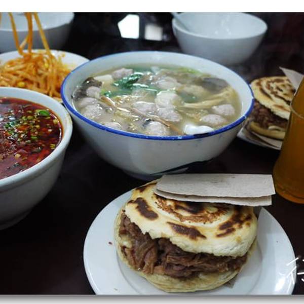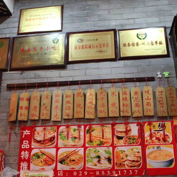 - 肉夹馍的夹肉带汁很入味,要是馍能再厚点我会更喜欢。西安很多小店就只卖没几个品种,做的很专