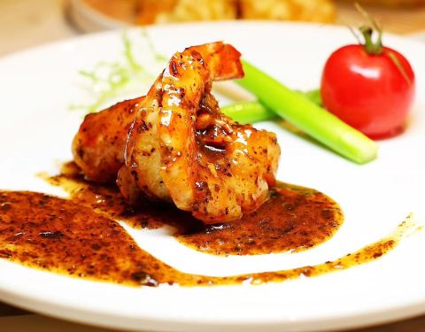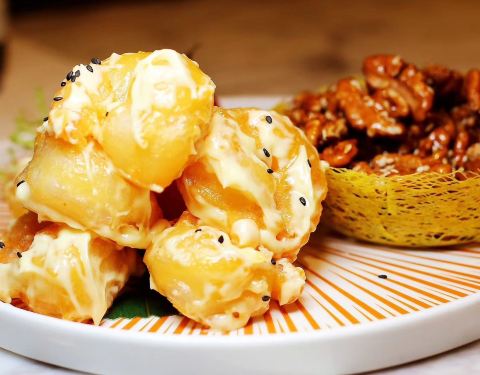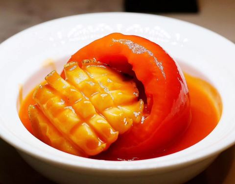 说主题,出品很不错,没有挑出毛病,我喜欢的三个菜,番茄浓汤鲍鱼,芥末虾球,乳鸽。番茄在于浓汤真的很浓,芥末虾球里除了大而Q弹就是配的琥珀桃仁很正点,乳鸽入味很好保持一些肉汁,其实还有个水晶黑松露饺也很好的。