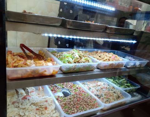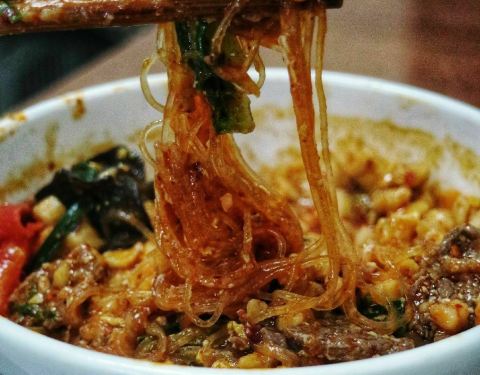 奔着好评来的,从牌坊入口进入,走了挺长时间,反正也不急,边走边看嘛,路途中,最刺耳的莫过于喇叭声了,回坊电瓶车、汽车、电动车、摩托车、三轮车、自行车、行人,川流不息,真热闹啊。终于到了,人没有想像中的那么多,一楼还有位子。点了普通牛肉小炒,买单后交票到隔壁四号窗口,换回一个牌子,候着。上菜速度还可以,馍没有选择自己手掰,死面的馍,太硬,再说了,眼不见心不烦,机器整得很均匀,吃着口感也还不错。说是酸辣口,更偏重辣,牛肉倒很软烂,也没有什么特别的味道,加了木耳青菜粉丝番茄豆腐干香葱做配菜,能看到的牛肉只有四块,三大一小,赠送的糖蒜有6瓣,味道不错,馍被炒后就是面的口感,整体来说还好吧,谈不上惊艳。吃完后嘴里就只剩下辣了。用餐过程中,不断听到服务员喊号送餐的高门大嗓,餐桌收拾得也还算挺快的,就餐环境也还不错,可以接受。服务台和餐桌上都没发现提供餐巾纸,也许二楼有,也许刚用完呢,反正每个人都会自备,不是什么问题。总之,感觉还不错,可以来尝尝。