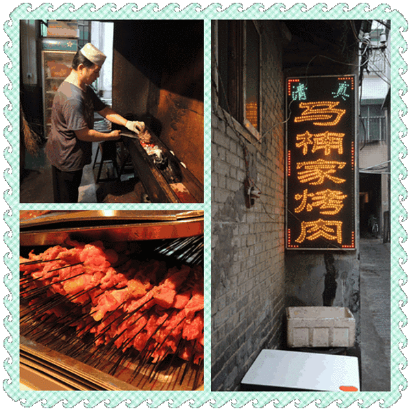 一路商量晚餐计划:在北京和其他城市,我们一直很羡慕那些大把大把吃烤串儿的人们。但考虑到那些肉的来源,一直没敢尝试。今天到了西安,到了回民街,相信这里的牛羊肉应该都是真的了吧,不会再有其它的乱七八糟的假冒货了吧!于是决定今天要大吃一顿烤串儿!来西安的前两天,我们特意在网上搜了几部关于西安美食的节目学习,其中XX卫视的《美食赢天下》节目提到了一家“马楠烤肉”挺有特点,但据说位于一个小巷子里,不起眼,很容易错过,不知今天我们的运气如何。喵喵计划先把烤肉吃个半饱,然后去吃其他小吃,争取吃他个十样八样的!聊着唠着。就来到了庙后街,沿着庙后街往东一拐,走了也就三五十米吧,绝对是无意间的一个歪头,绝对是不经意的随便一瞥,紫檀的脚步定住了,不是因为脚步的“老伤”复发难以移步,而是因为他清楚地看到了下图的景象被惊呆了:说实话,马楠烤肉的食物真的挺地道的,可是他家老板的销售方式太各色了,店家先斩后奏,直接给客人作主,烤好了端上桌子,你说要还是不要?要吧,明明太多,吃不了浪费;不要吧,东西已经烤好了,不要肯定闹矛盾。本来出来玩的,就是图个乐,闹个矛盾就不值当的了。