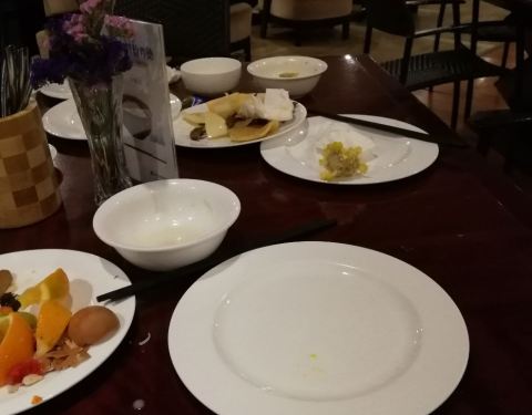 西安新兴温德姆酒店西餐厅住店用的早餐,中西式结合,厨房根据前台做的客流量报表定量,不浪费也不会少