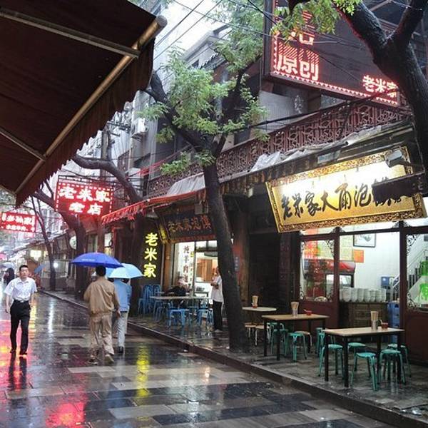 只睡了没几个小时,我们第二天一大早就打车去吃老米家泡馍了! 出门在外,总是很兴奋!根本不会睡懒觉! 宁静的清晨。。。实在无法想象昨天晚上这里还是热闹的大排档呢!面对满大街的"老X家"泡馍,有点迷失方向,好...