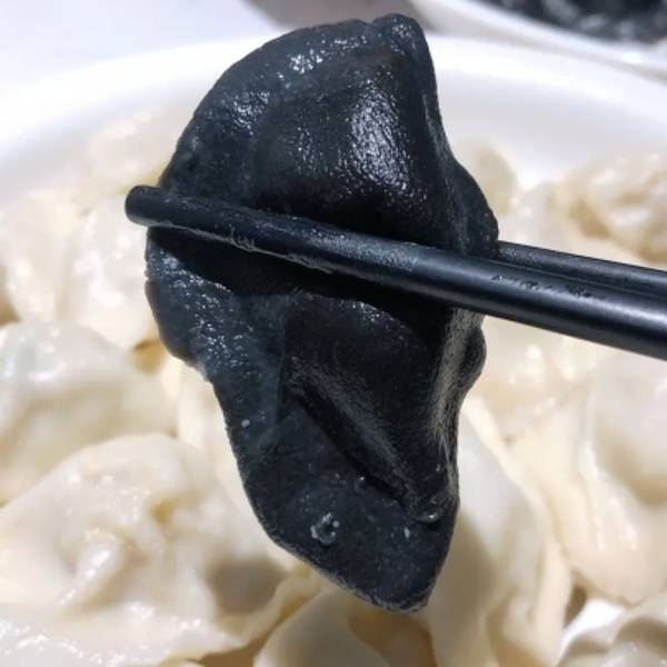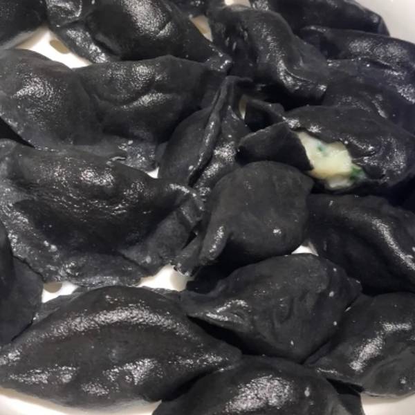 或鱼水饺墨鱼汁的皮看着黑的,但是里头是或鱼的口感也比较的独特,吃起来真的非常的不错,非常的鲜美。