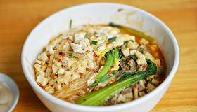 有些日子没吃泡馍了,西安高新区这片离的近的几家中湘子门牛羊肉小炒还算不错,多年老店(当年在南门里湘子庙),两人泡馍来个一份儿,分成了两碗,再来份丸子烩菜,吃的饱饱的。(有空泡馍一定要自己掰啊,这样吃着才有味;烩菜稍有些咸,再淡点就好了)。再加两瓶冰峰共花60元,还好还好,比较值。环境还算不错,空调挺凉快。