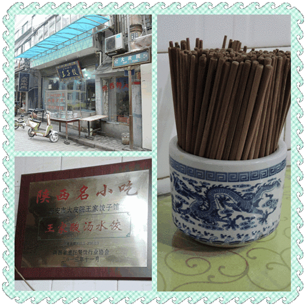 好好地睡了一大觉,醒来精神饱满。窗外又下起了小雨,看来天气预报又说准了。洗漱完毕,想起西安颇有名气的酸汤饺子还没有吃呢。俗话说:“好吃不过饺子,舒坦不如倒着。”昨晚休息得很好,今早就来个好吃的吧——饺子。西安很有名的“饺子王”——王家酸汤水饺是我们的首选。“饺子王”——王家酸汤水饺味道很好,鲜美可口,值得品尝!
