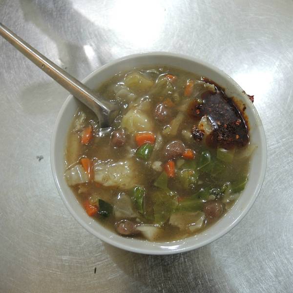 在紫檀的印象里,这糊辣汤应该是河南的早点代表呀,“糊辣汤+葱油饼=一上午都不饿”,特别扛饿,顶时候。十几年前出差郑州时,一连吃了一个礼拜呢,那浓重的味道现在想起来仿佛还在舌头下面转悠着呢。这么说着,还真有点想来一碗河南的糊辣汤了 。不过,今天我们选的西安回民街的糊辣汤可是带肉丸儿的,档次应该高出一截吧 。