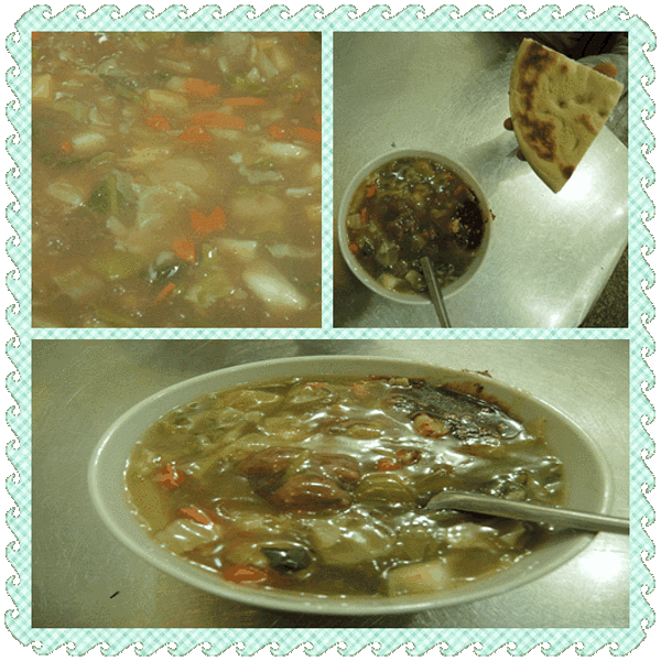 与别家不同的馍大且厚.汤的里面除了常有的还有木耳!汤的味道称不上特别,但吃了比较舒服,为了要原味,其他什么调料都没加!其实另外还有香菜蒜苗.辣油.香油可选!