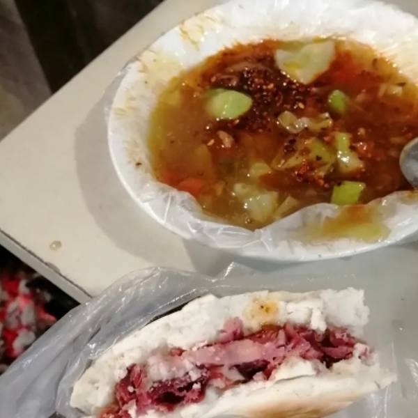 如果说选心目中一样西安最好吃的东西,那我毫不犹豫选肉丸胡辣汤。麻辣鲜香,配上Q弹的牛肉丸,冬天里的寒冷全都一扫而光了! !腊汁肉夹馍的白吉馍好大一个,勉强吃了半个还吃撑了,不过超美味!