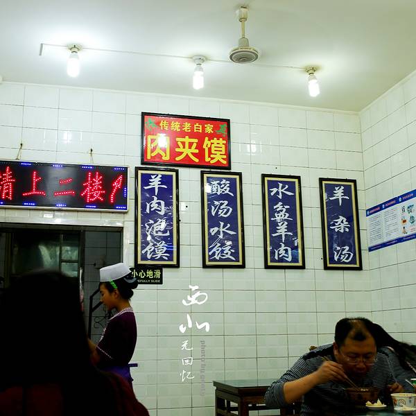 ...是人相对少些,馍小的5元/个,镜糕5元,红柳烤肉10元/串,随便走进一家老白家泡馍,20元/碗