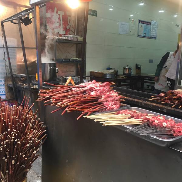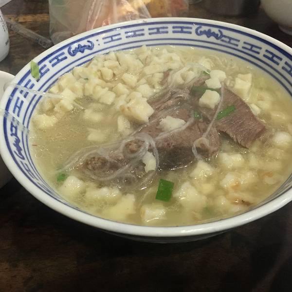 北广济街这边都是小吃和餐馆,跟回民街差不多,但是人相对少些,馍小的5元/个,镜糕5元,红柳烤肉10元/串,随便走进一家老白家泡馍,20元/碗。陕西口味重,有些咸。牛肉泡馍红柳烤肉北广济街