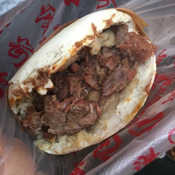 这家肉夹馍一定要尝!哪怕排队也是值得的!为啥?因为同样是15元一个的价格,这家店量最足呀! 友情小tips:下午店内堂食肉夹馍无需排队,量不减!