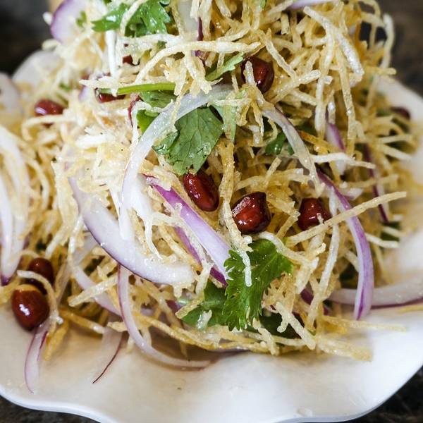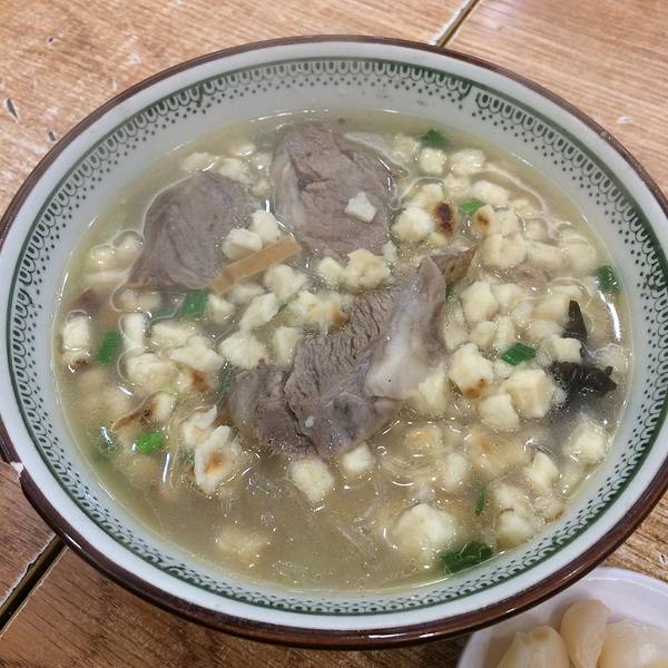 - 不过比起羊肉泡馍,我更推荐这家的水盆羊肉,也是有馍的,而且是自己撕,搭配甜蒜,完美