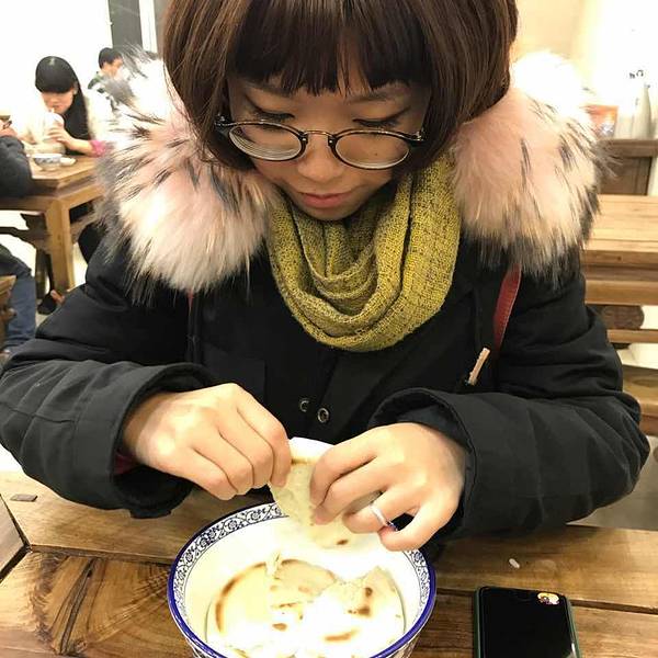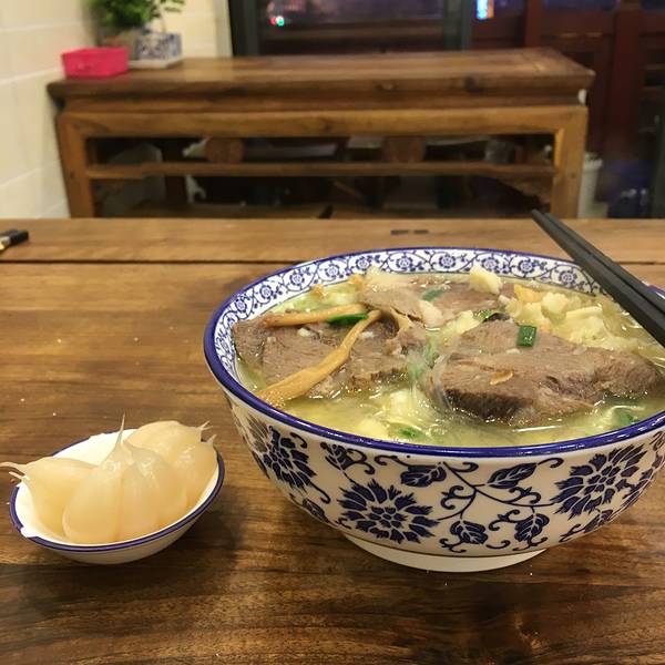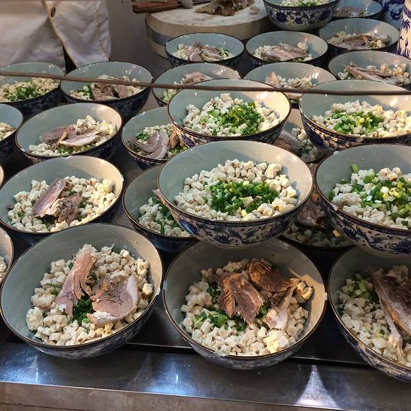 这算是西安比较有名的一家泡馍了吧 说实话去西安之前在天津吃过两次 各种没味道像是白水泡发面饼 所以去西安并没有多期待 并且安排在了第二天 吃就要吃最好吃的 点了一碗泡馍两个人吃 两个馍自己掰 真的是个力气活 很累 掰到手酸😭 以为自己掰的已经够小了 后来发现根本是弱爆了 这家泡馍好好吃 味道很浓郁 很香一定一定要尝一尝 38软妹币