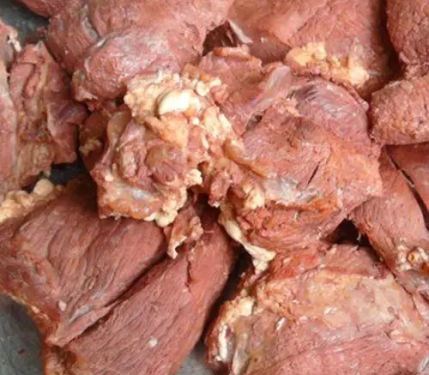 肉有腊牛肉酱牛肉,还有羊肉,羊肉的比较贵。酱牛肉味道确实比腊牛肉要好吃,但要咸一些。腊牛肉的肉夹馍也很好吃,牛肉很烂很干,而且口味很独特。 - 腊牛肉是凉的, 而且没有微波炉, 就凉着吃了.有次去吃定家小酥肉想着顺便吃点腊牛肉,刘纪孝又人太多