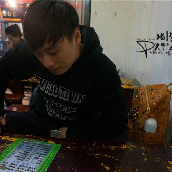 看它家招牌上写了麻辣甜酱,大概就是特色吧?明显的好多外地游客。矮桌加长条凳,比较拥挤
