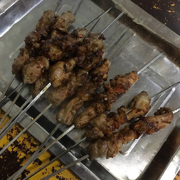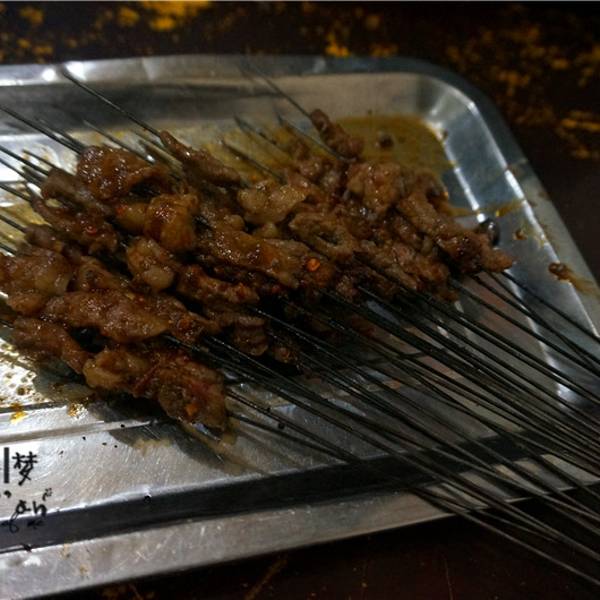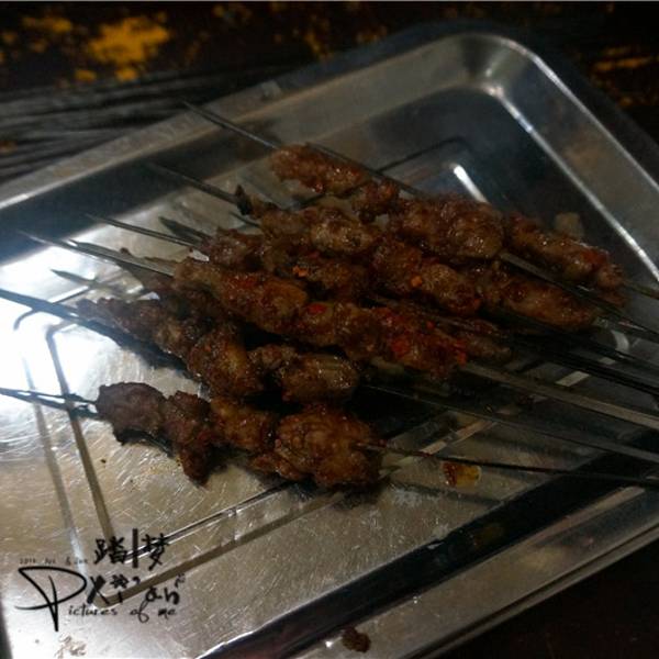 文文烤肉-很传统的方式,盘子古旧的,涮牛肚一盘小份20元,拌料是麻将和辣油。细签烤羊肉和烤牛肉,味道马上窜出来了,铁钎子烤出来的肉串,热是从里到外发出来的,保证每一寸的香味都被我收入味蕾。好多本地人也在吃的,由此可见味道好到飞起来。这顿只要70元