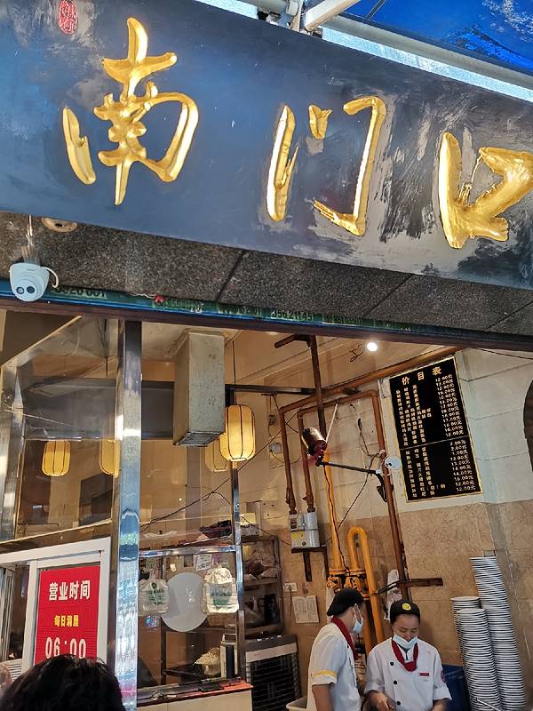 贵阳旅游,晚上逛甲秀楼肚子饿了,想在附近找个地方特色美食,找了好一阵,都是些毫无特色的店,无意中看见有个夜市街,里面乱七八糟的东西很是失望,走出夜市街左拐看见这间南门口面店,饥不择食的走进去,当时...贵阳旅游,晚上逛甲秀楼肚子饿了,想在附近找个地方特色美食,找了好一阵,都是些毫无特色的店,无意中看见有个夜市街,里面乱七八糟的东西很是失望,走出夜市街左拐看见这间南门口面店,饥不择食的走进去,当时不用排队,人不多,就点了一份肠旺面和脆哨面,每份十元,不加辣椒,在窗口旁边看着厨师做面,加了菜后,每一碗都加了满满一大勺油进去,不要成本一样的加,阻止加油已经来不及了,我叹为观止。吃进口中觉得味道还不错,只是太油腻了,每一口都得把油先在碗边刮掉才入口,真是好奇当地人长期这样吃法,是否容易高血压冠心病啊?正吃着,外面竟然已经排起了长长的队伍,观察后发现很多人都加了大量的红油和辣椒,加了大勺大勺的肥肠和油腻的软哨脆哨,端上桌都在大口大口的猛吃,新鲜滚热辣地灌进胃里,真是服了。感觉味道是可以的,但是这种饮食方式不健康,尝尝即可。