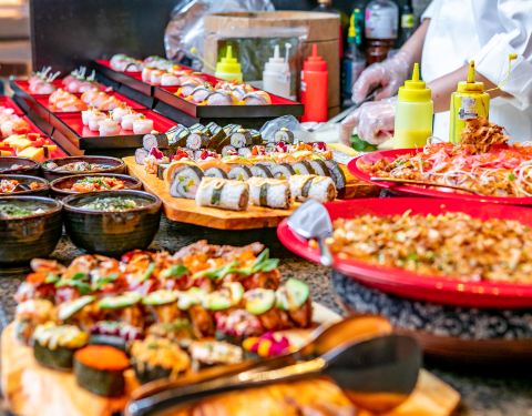 一家非常不错的自助餐厅,品种非常的丰富,这里的环境也好,很多人到这里来选择就餐,餐具也非常的漂亮,值得到这里来品尝美食。