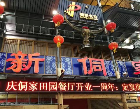新侗家食府,门口有穿着侗族服装的服务员,整个菜品有民族特色,环境挺不错,可以试试他家的荞麦饭。