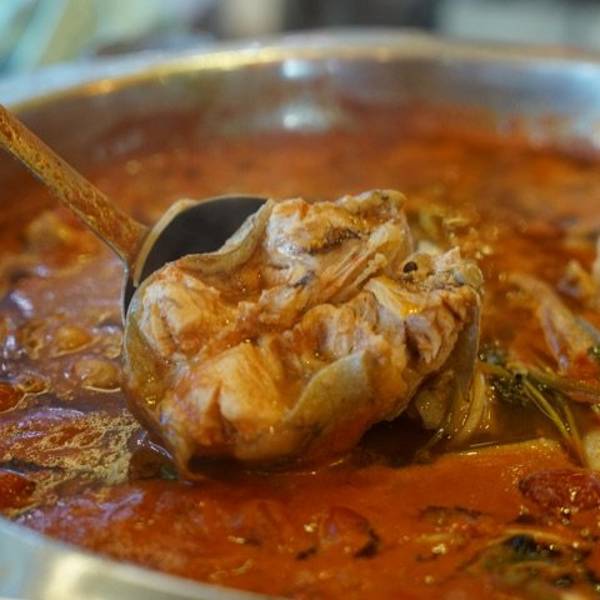 煮熟入味的整个过程大约需要20分钟左右。而旁边桌的看起来是一整条下锅,只是在鱼身上划了几刀以便入味