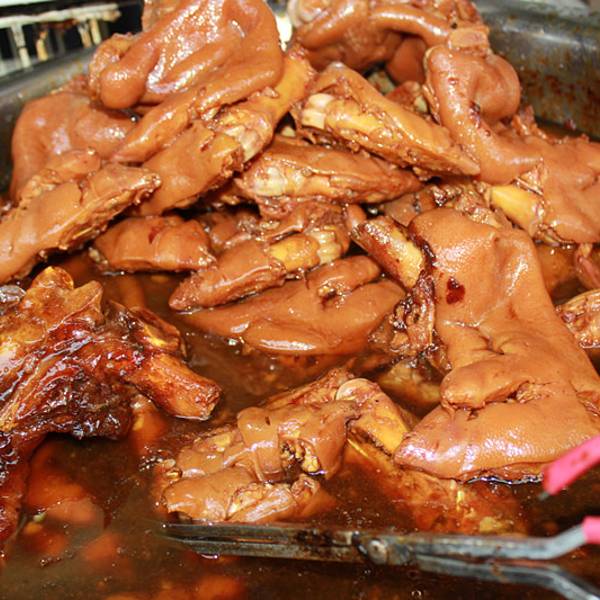 - 古城外的著名“王万妈卤猪脚”,一行人虽已酒足饭饱,但仍要不迟辛劳的找到这家著名的猪蹄店一吃为快