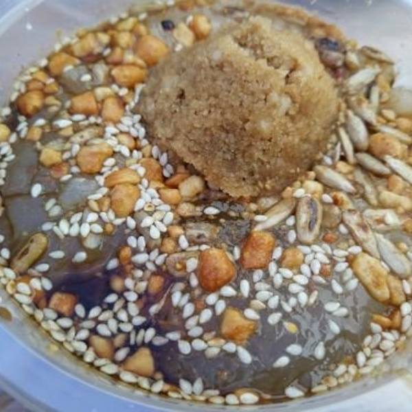 她家还有一味很是好吃,叫做糕粑稀饭~ 与云南调糕藕粉形态很像,但完全不一样的食材与做法~ 将米糕粉填入小木桶,放在特色大方壶上蒸熟,另取一碗,舀上糯米白浆,放到大方壶前方,冲入滚水,瞬间变成似于藕粉的透明羹状,依次放入玫瑰酱水,大量花生与瓜子,最后搭上刚蒸熟的糕粑,水、滑、软、脆、香、甜,相互交织,伴上玫瑰的纯香,超迷人~
