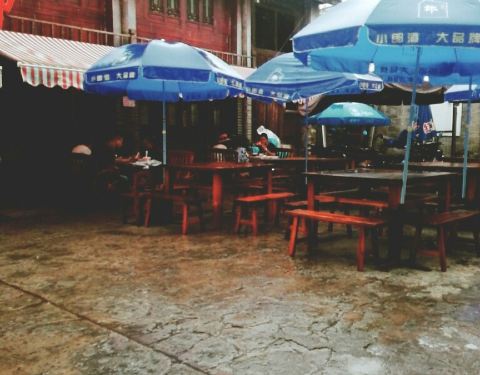 店员都是大姐大妈,拽拽的,懒懒的,爱理不理的感觉。刚好遇上下大雨,进去看到有带棚的户外座位,立马坐下,露天空气比较好,也更为写意。点菜的大姐老师不客气,一过来就拿个椅子坐下来,也不是说普通话的,问...