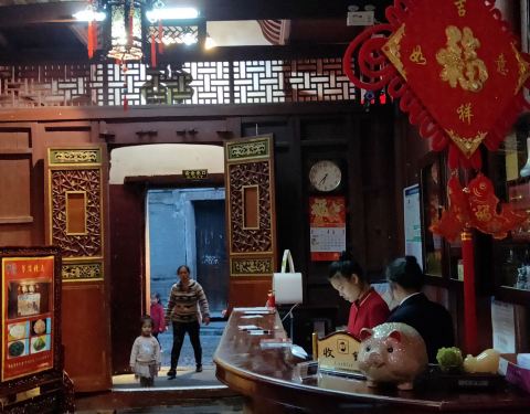 董府无疑是我们这么晚还来灶儿巷的根本原因,这个三进的深宅大院原来是钱庄,难道是风水好吗,现在也是收钱收到手软。生意太火爆了!来晚一点就排号!味道真心一般,服务态度也不敢恭维。。可能是第一天有点累,...董府无疑是我们这么晚还来灶儿巷的根本原因,这个三进的深宅大院原来是钱庄,难道是风水好吗,现在也是收钱收到手软。生意太火爆了!来晚一点就排号!味道真心一般,服务态度也不敢恭维。。可能是第一天有点累,本来对客家菜无感,而且因为来的有点晚,有的菜没有了。。