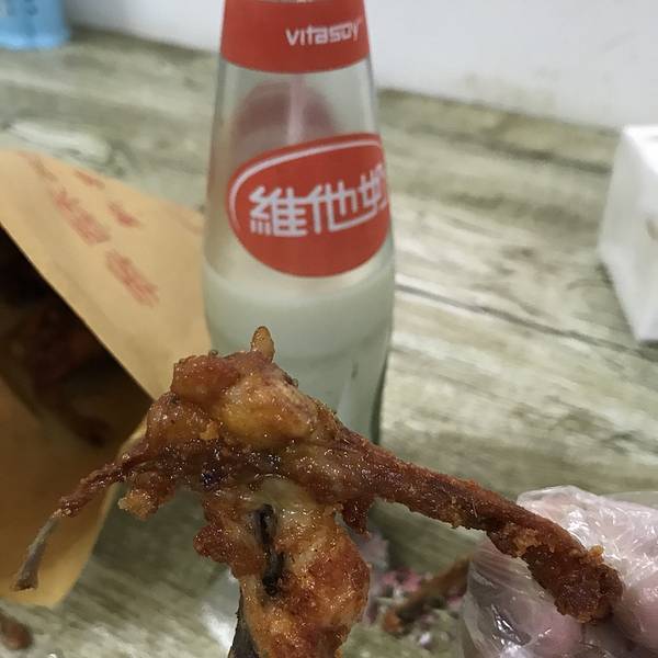 这条不长的街上汇集了众多美食,比如这家卖油炸鸡舌的,炸得金黄香浓的鸡舌配上冰冰的维他奶简直是绝世美食