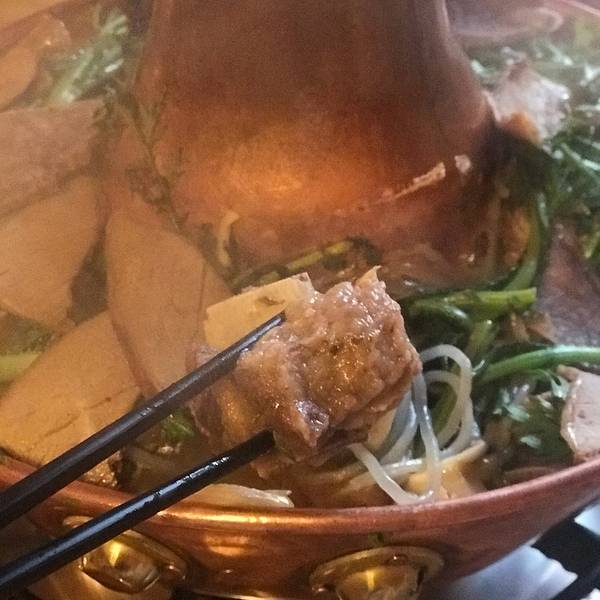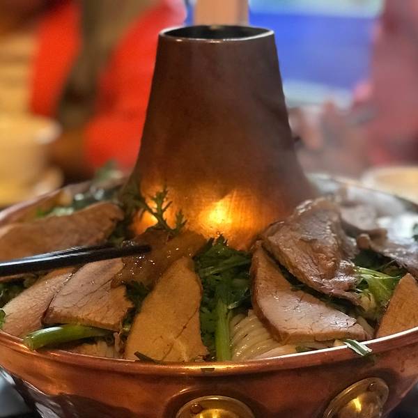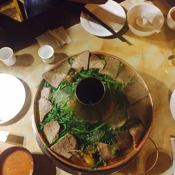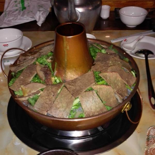 古城里的热门火锅餐厅,围绕着中心铺满了排肉,风格走的是豪放派。吃饭花了199元