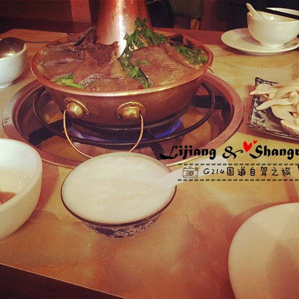 头不晕了精神气来了心情好了,憋了2天,终于可以去大口吃肉了。。热贡艺人阁,客栈老板娘推荐的,同样的大众点评评价也很高,而且去吃的好多都是当地人。。这两天小s一直都惦记着。。餐馆有两个门,导航把我们带到临街的门,看起来好安静。。原来小巷子里还有另外个门,因为有得停车,貌似更多的人从这边进入。。门都是关着的,推门进去,满满都是客人。。简直酒香不怕巷子深。。我们点了一个小份的牦牛火锅,一个小份的松茸,还有一份酸奶。。可能是海拔高沸点低的原因,牦牛肉无论煮多久,口感都特别嫩。松茸很鲜甜,酸奶很开胃。。。胃口大开后,觉得所有东西都很好吃很好吃。。餐馆老板对客人的态度也超级好。。这一餐吃得很满意。。饭后我们没有逗留,沿着G214国道返程。。get到破解高原反应的方法,搞不好下次会愉快重游。。再见,香格里拉。。。