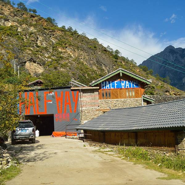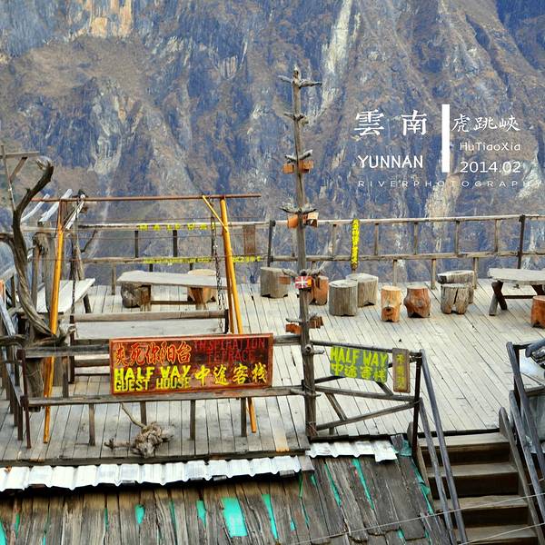 到halfway的路牌一路上都有,几百米就是一个 half way 是一个客栈,这是halfway的爽死你阳台。 客栈是服务非常完善的,虎跳峡最早的客栈之一,非常的成熟,价格也公道,饭菜也很可口。 客栈阳台上可以看书,吃饭...