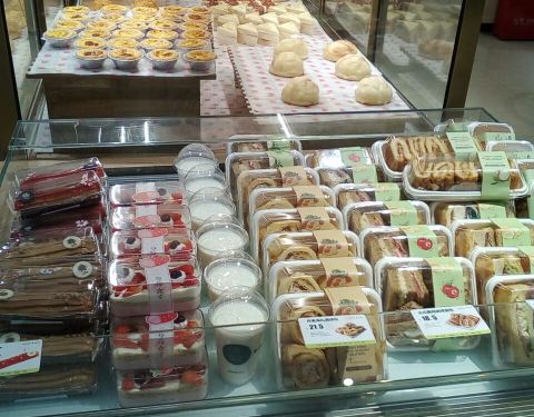 国内连锁经营的日系面包房,位于商城负一楼美食广场内,店面宽敞整洁,售卖各种自制的西式糕点、点心,品种丰富,价格适中,新鲜味美。