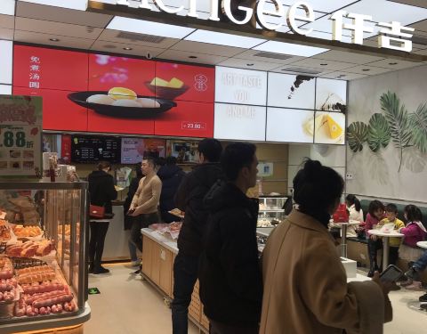 - 仟吉应该是这边生意最好的面包店,每次来买面包的客人都很多,而旁边的多乐之日很少有人去,他家面包...