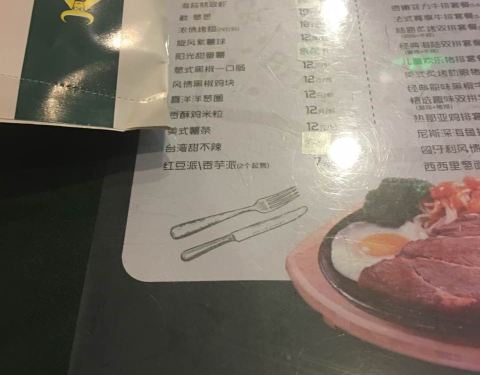 牛排做得中规中矩,味道都差不多,中餐推荐排骨套餐,内容丰富,味道还可以。作为随便吃吃的地方,总体感觉还行,餐厅装饰也很挺有风格的。量大、价格实惠、服务不错。餐厅门面够气派,灯光璀璨,走进大厅,眼前一亮,服务真的很不错啊,很热情 一点不嫌烦。除此之外,该店的地面也扫的很干净,一整天都会有人的打扫,不像有些餐厅地面都是油腻的。服务员的服务态度特别好,像是专门培训过一样,经常会问顾客需要什么帮助,给人一种比较亲切的感觉