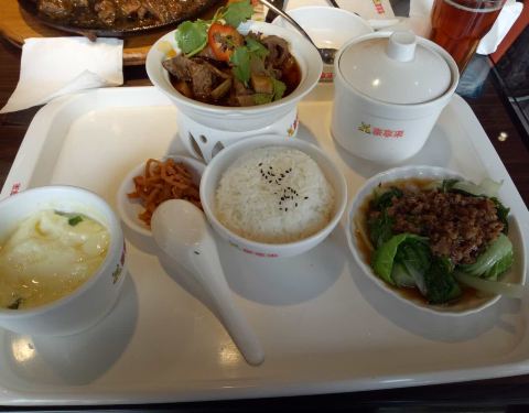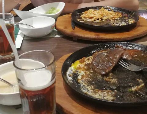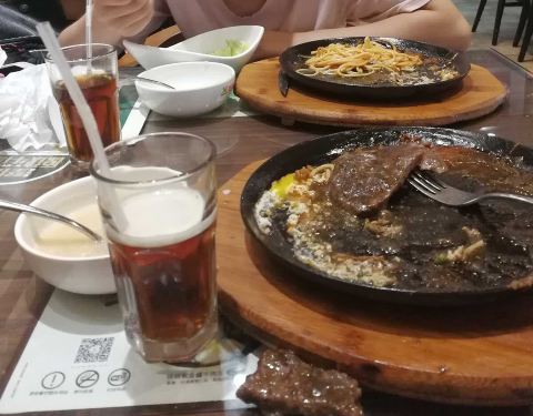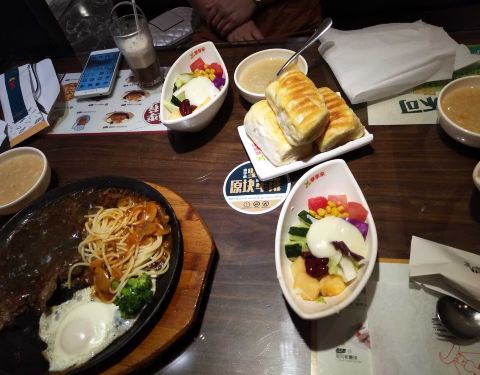 虽说是西餐馆,但走“混搭路线”,出品的中餐也“不少”。牛排做得“中规中矩”,味道都“差不多”;中餐“推荐”排骨套餐,内容“丰富”,味道还“可以”。作为“随便吃吃”的地方,总体感觉“还行”。牛排做得“中规中矩”,味道都“差不多”;中餐“推荐”排骨套餐,内容“丰富”,味道还“可以”。作为“随便吃吃”的地方,总体感觉“还行”。服务态度还不错的.味道也不错,餐厅装修简单,大厅快餐整洁,桌椅摆放整齐,方形的的桌子旁边的椅子看上去很舒服。大厅的吊灯散发的灯光让人感觉温馨。如果坐在靠窗的位子可以一边吃饭一边欣