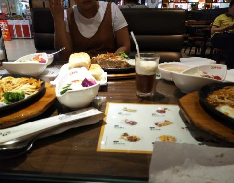 - ...门口,店挺大,装修很不错,里面很宽敞,牛排种类挺多,美图、饿了吗等有外卖很便宜但没堂食的味道好