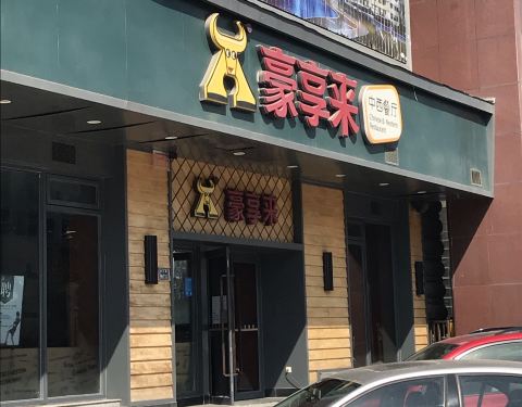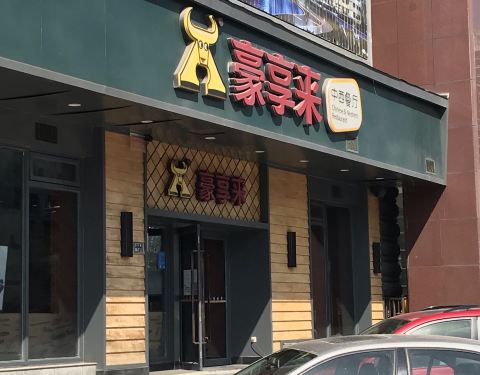 豪享来经三路店在经三路世纪联华超市门口,店挺大,装修很不错,里面很宽敞,牛排种类挺多,美图、饿了吗等有外卖很便宜但没堂食的味道好