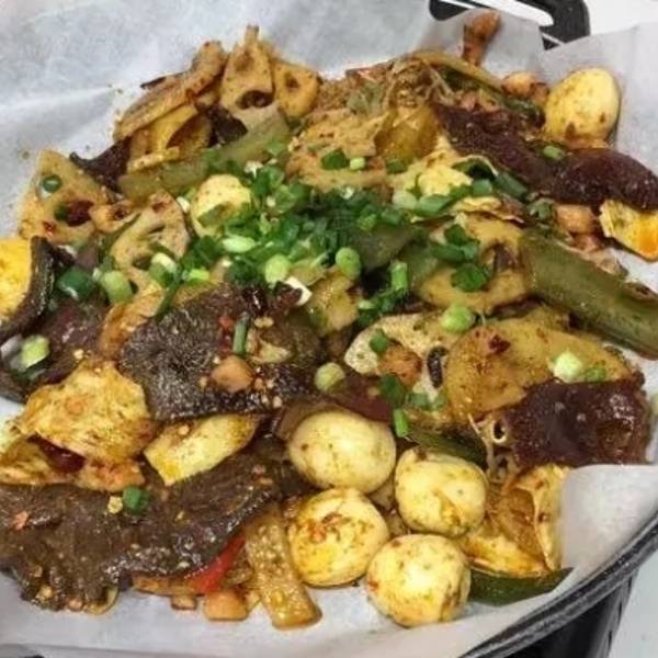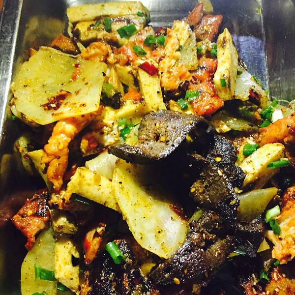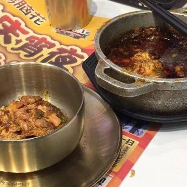 ...后放在一个大盆里的大杂烩,然后用筷子当菜一样吃,味道非常之好,如果来重庆吃美食,这家店必须得尝