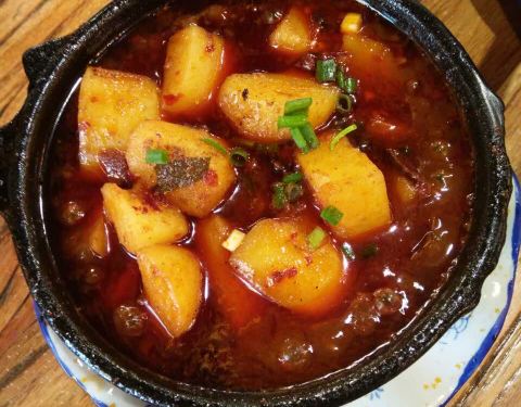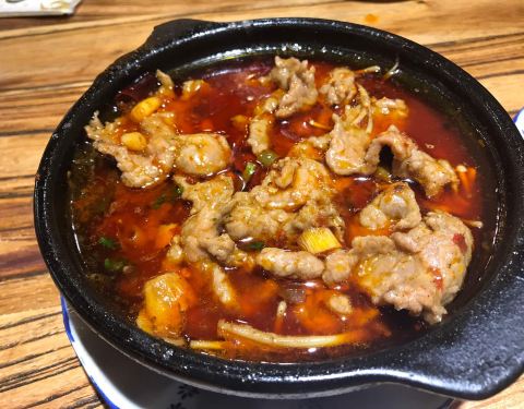 重口味的江湖菜,以沙锅为主,荤素自主搭配。酸菜红烧肉又软又糯,半肥半瘦,与酸菜一起烧制,鲜香爽口。红烧牛肉,稍有嚼劲,肉质鲜美。麻辣肉片类似于水煮肉片,但口感更劲爆。肉末茄子,所有的佐料与肉末的精...