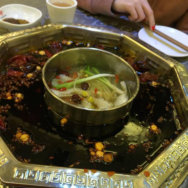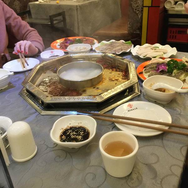 跟着当地的朋友去吃的,环境挺好的,锅底虽然很香但我还是吃不了辣,基本是锅里涮涮茶里洗洗的,最好吃的是毛肚和鸭肠,肉没什么特色