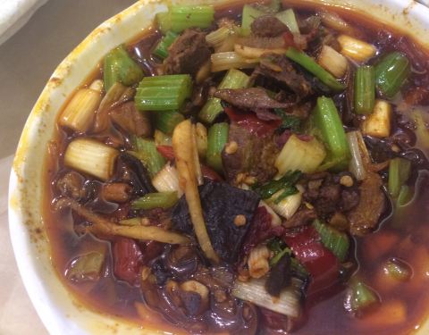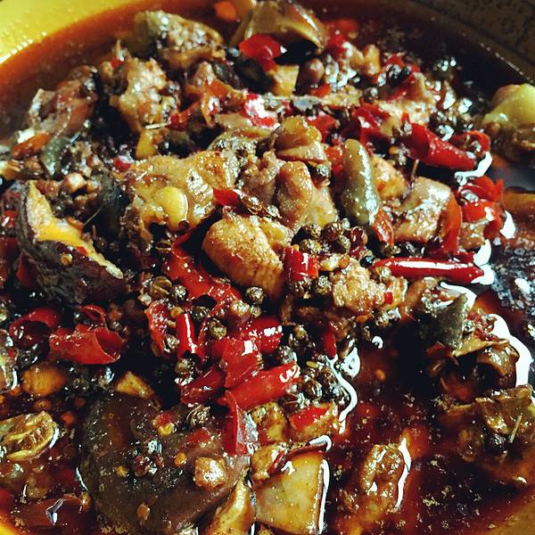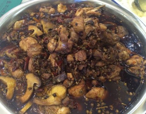说到南岸的美食,那一定少不了泉水鸡的份。泉水鸡上来一大盆,满眼的花椒,吃起来麻麻的,辣度适中,不烧胃