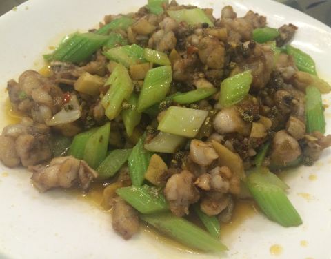 当地的小伙伴推荐南山上有个网红店,我们乘了索道打了车开到了这家看上去规模很大,类似农家乐的店。两个人点了四个菜老幺泉水鸡泡椒鸡杂泡椒牛蛙清炒空心菜见图就知道是农家乐的品质,口味还算地道,中规中矩。本来以为重庆菜辣到让人便秘,没想到反而治愈了小伙伴攒肚的