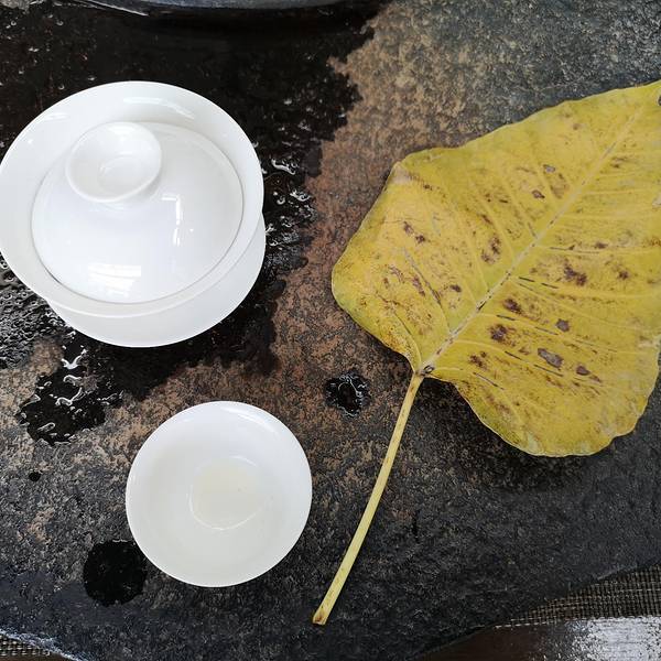 这家茶店是一对夫妻开的,退休闲着,把自家老屋改造装修后做起来了。此时天气热又很晒,在这里吹着风扇,喝着茶,感受一些潮州的茶文化。凤凰单丛茶出产于潮州凤凰镇,因凤凰山而得名。喝了鸭屎香和拖富后两种,名目也是搞不太清楚,广东地区喝得较多吧,感觉与以往喝的福建等地出产的乌龙茶确实不同。开元寺捡拾的一片菩提叶。