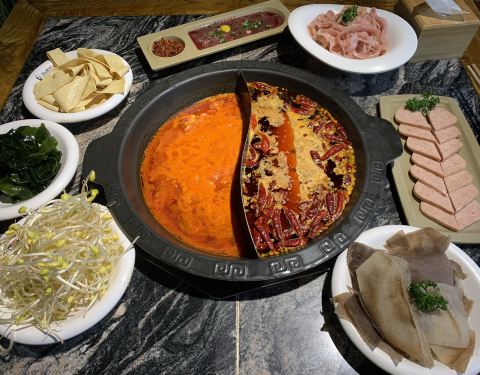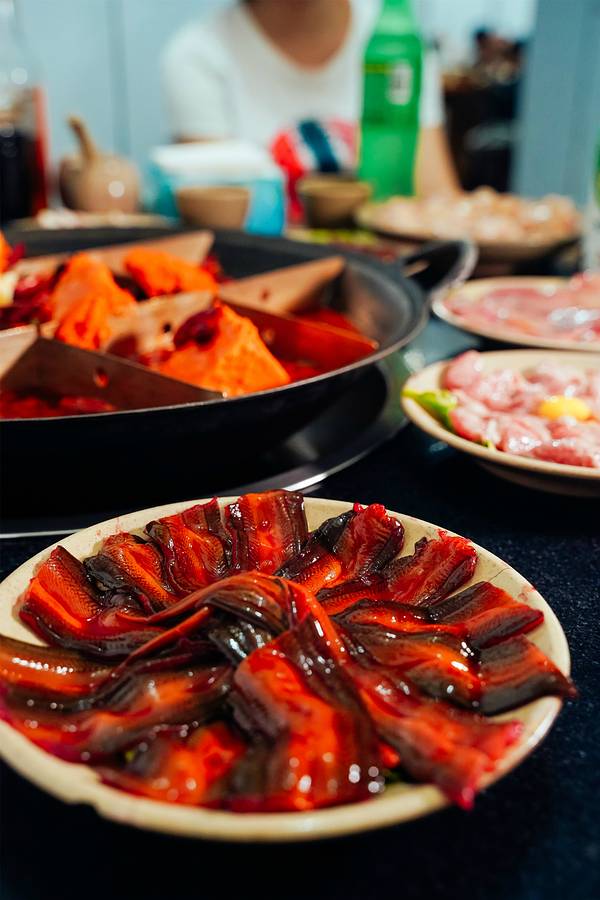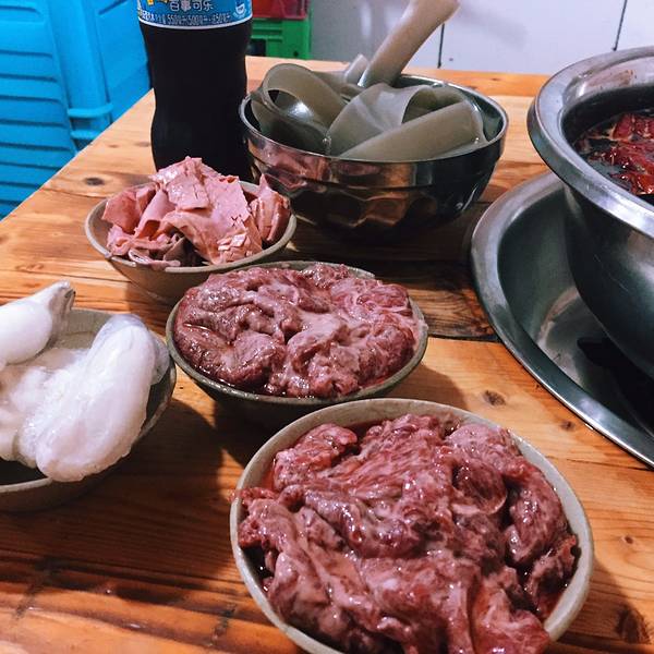 - 冰粉配火锅超级绝。他们家的食材特别特别特别!提醒我们黄喉要赶快吃完,否则影响口感。我们点了超级多