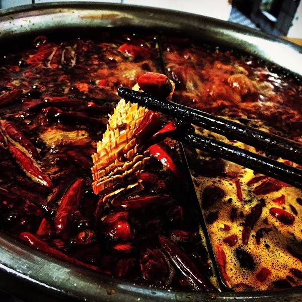 依旧是小小的店, 依旧是红艳艳的牛油,香味肆意,脑花...刚到重庆的时候,的士司机给我们推荐了这家火锅店,后面才知道这家有出现在舌尖上的中国。这离我住的酒店很近,打的就5分钟路程,于是今天的午餐就是它了!