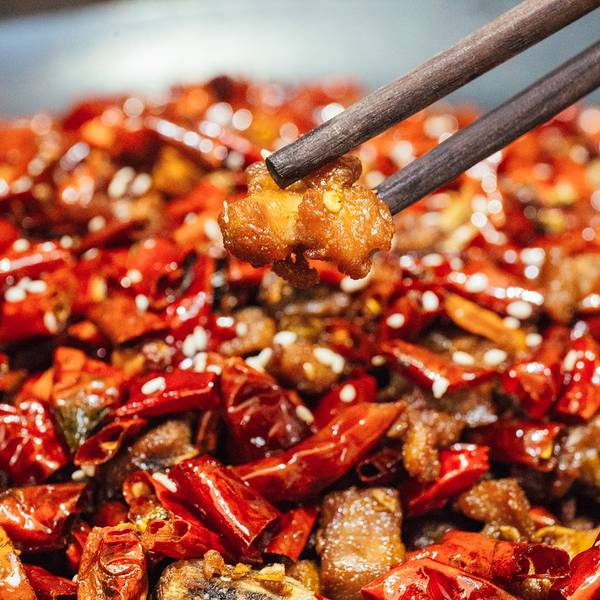 - 经典的 重庆 菜也像 重庆 火锅一样,自下而上,所以也叫江湖菜。麻、辣、咸,还带着一丝回甜