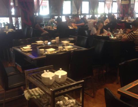餐厅全落地窗,红黑色调为主,餐桌擦拭非常干净,入座后人手一条热毛巾擦拭。